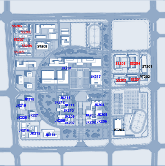 沙河校區(qū)學(xué)生公寓以SS2+序號”標(biāo)識,具體情況如表2所示,位置如圖2所示。
