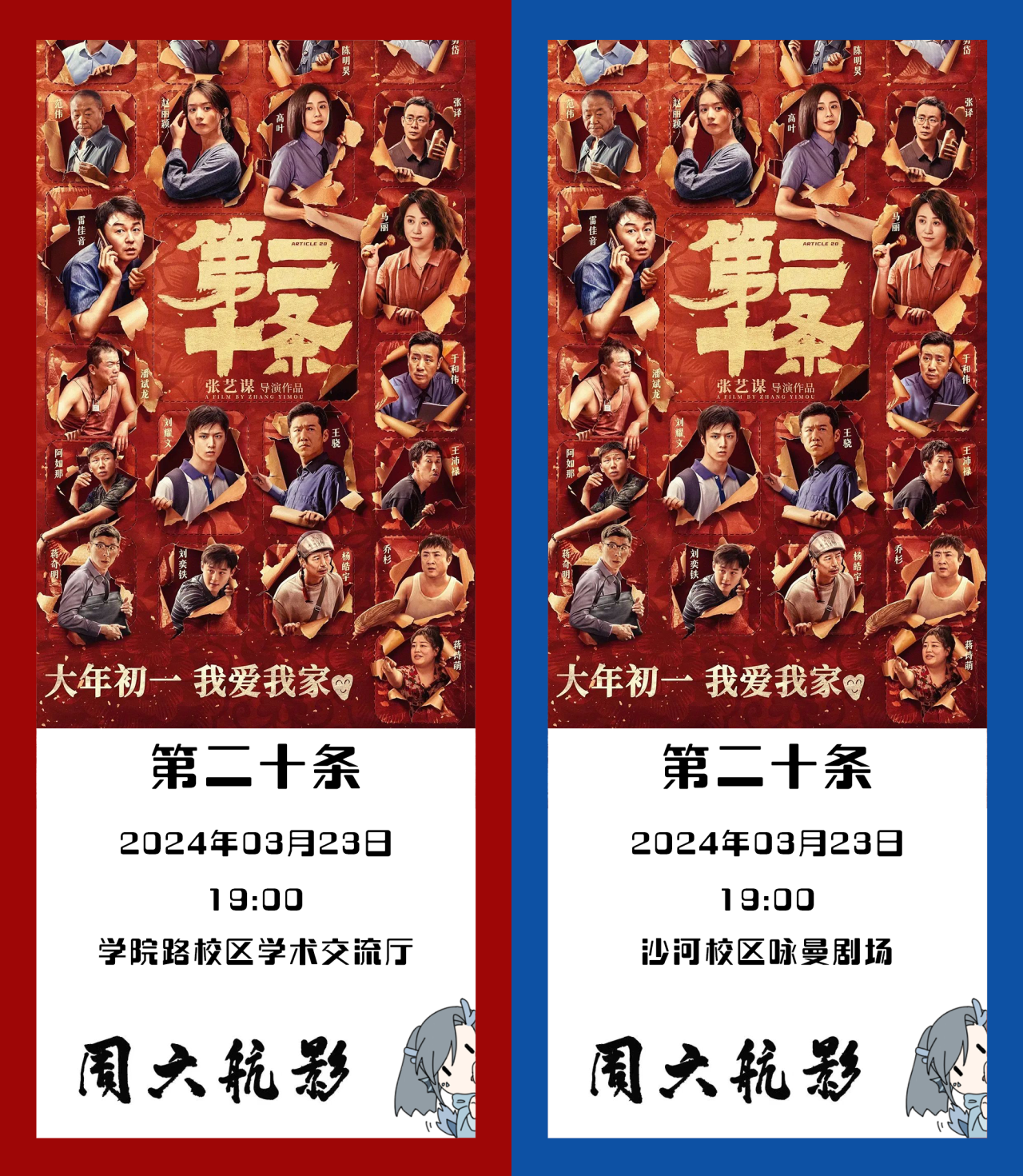 3月23日(周六)19:00,學(xué)院路校區(qū)學(xué)術(shù)交流廳、沙河校區(qū)詠曼劇場同步放映!