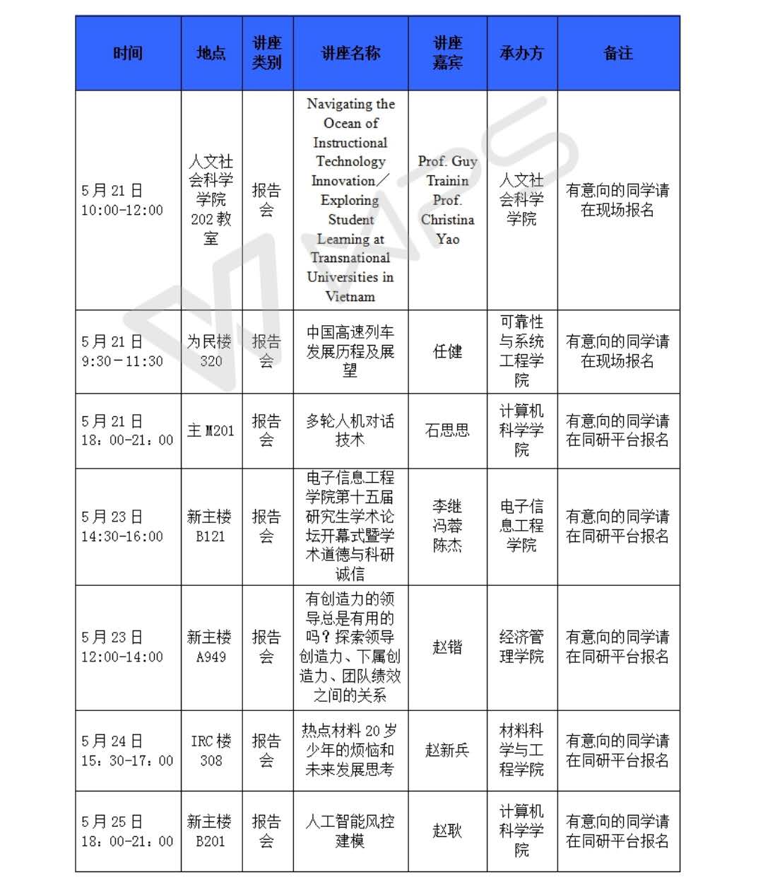研究生人文與科學素養系列講座預告(5.21-5.27)