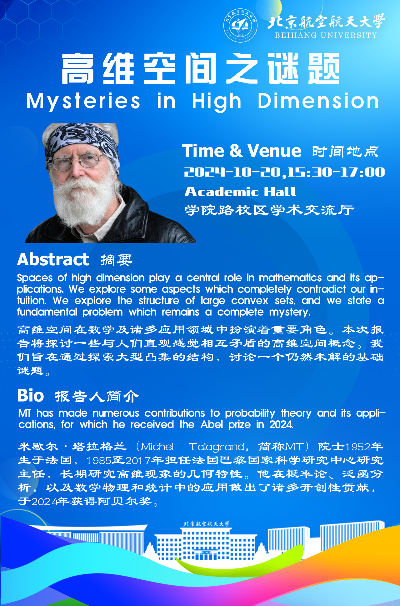【北航大講堂】2024年阿貝爾獎得主Michel Talagrand院士:高維空間之謎題
