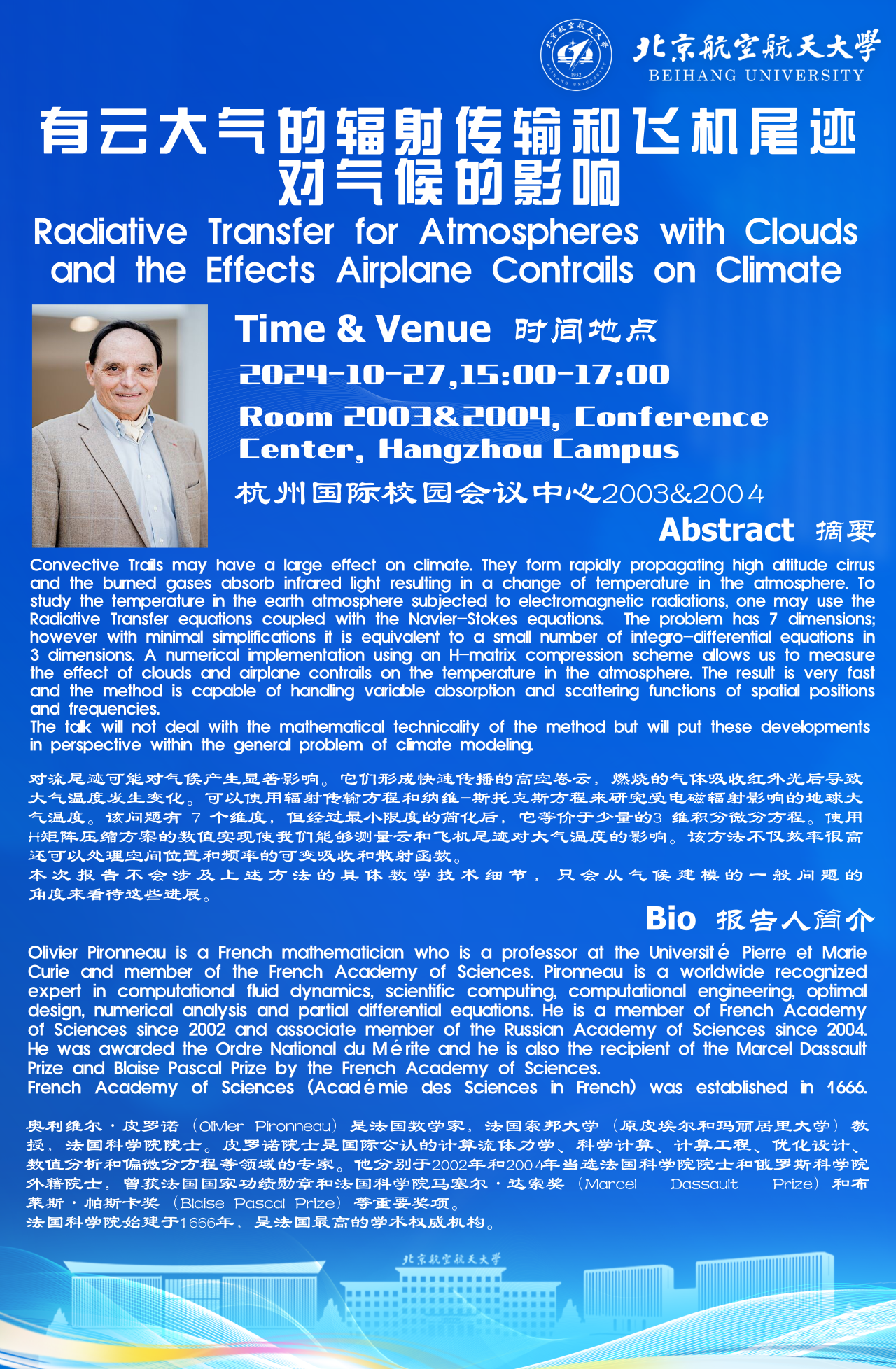 法國科學院院士Olivier Pironneau:有云大氣的輻射傳輸和飛機尾跡對氣候的影響
