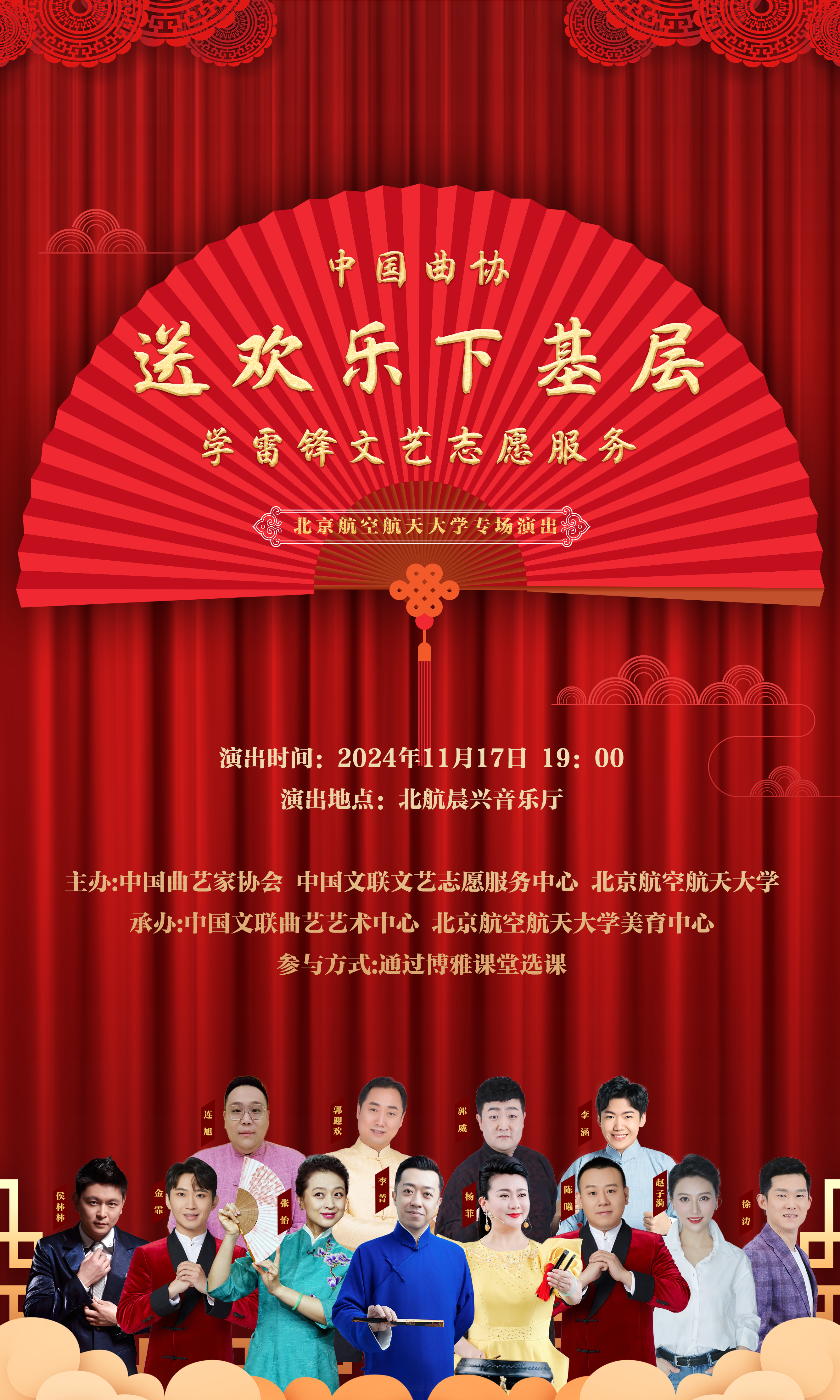 主辦單位:中國(guó)曲藝家協(xié)會(huì)、中國(guó)文聯(lián)文藝志愿服務(wù)中心、北京航空航天大學(xué)