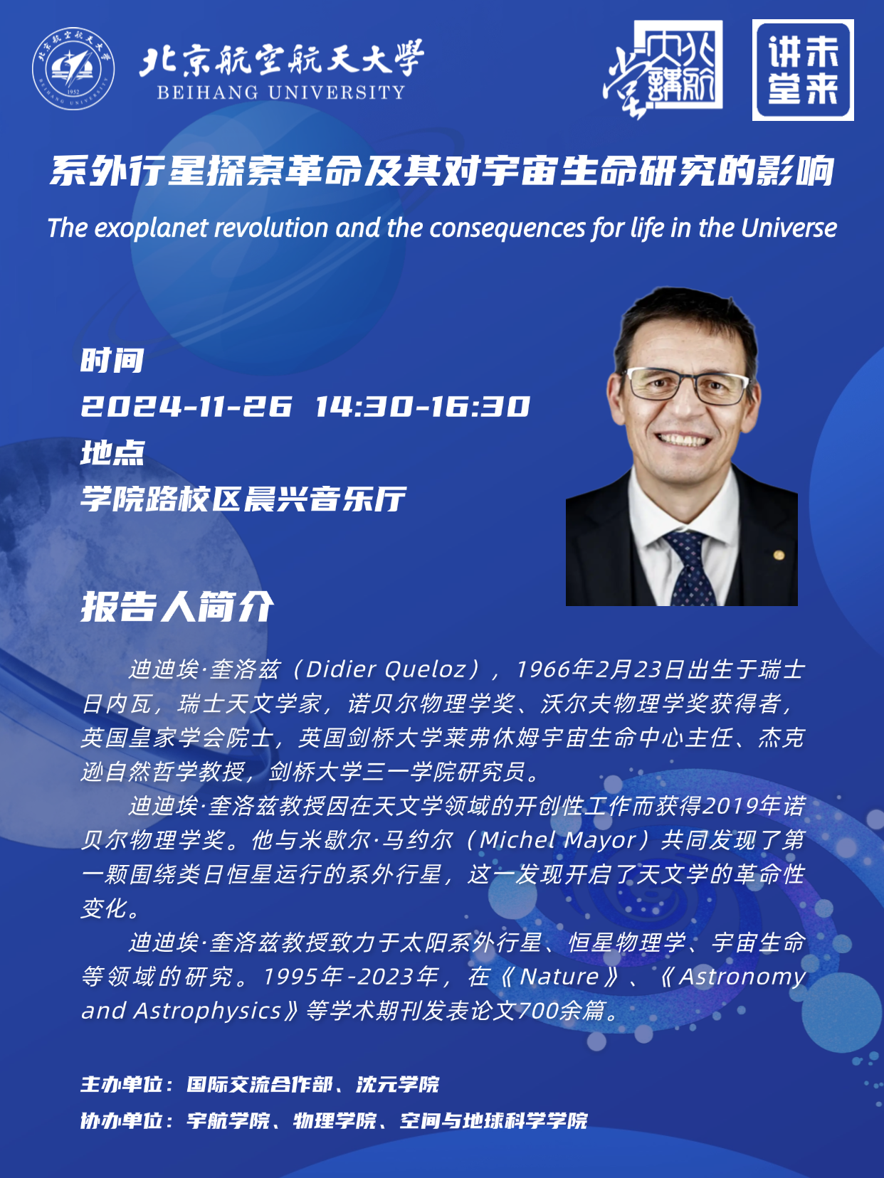 【北航大講堂】Didier Queloz:系外行星探索革命及其對(duì)宇宙生命研究的影響
