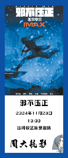 11月23日(周六)19:00,學(xué)院路校區(qū)學(xué)術(shù)交流廳、沙河校區(qū)詠曼劇場(chǎng)同步放映!