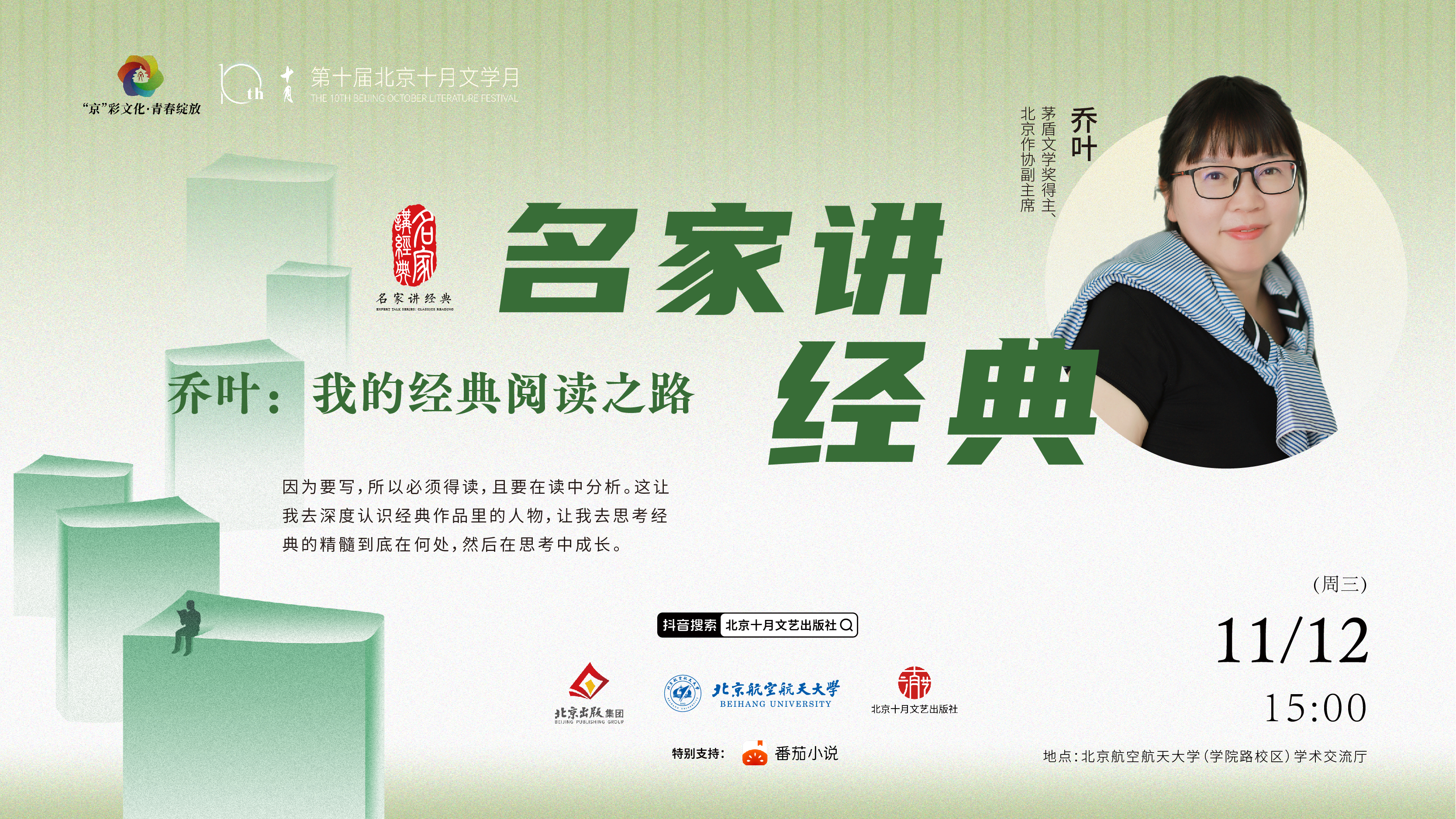 為什么要反復(fù)閱讀經(jīng)典?她說(shuō),“因?yàn)橐獙?xiě),所以必須得讀,且要在讀中分析。這讓我深度認(rèn)識(shí)經(jīng)典作品里的人物,讓我去思考經(jīng)典的精髓到底在何處,然后在思考中成長(zhǎng)”。這一次,茅盾文學(xué)獎(jiǎng)得主、北京作協(xié)副主席喬葉將為我們講述自己的經(jīng)典閱讀之路。作家之路,人生之途,手持書(shū)卷,素履以往。