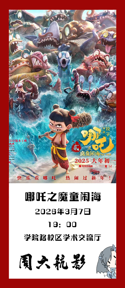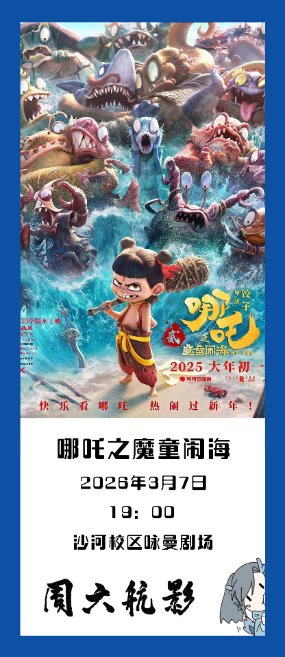 新學期,新啟程,周六航影。如約而至?!钢芰接啊沟谝恢?,讓我們一起走進《哪吒之魔童鬧海》,跟隨哪吒與敖丙的腳步,走入純凈無瑕的玉虛宮,在重塑肉身的征途中,揭開闡教深處的隱秘真相。