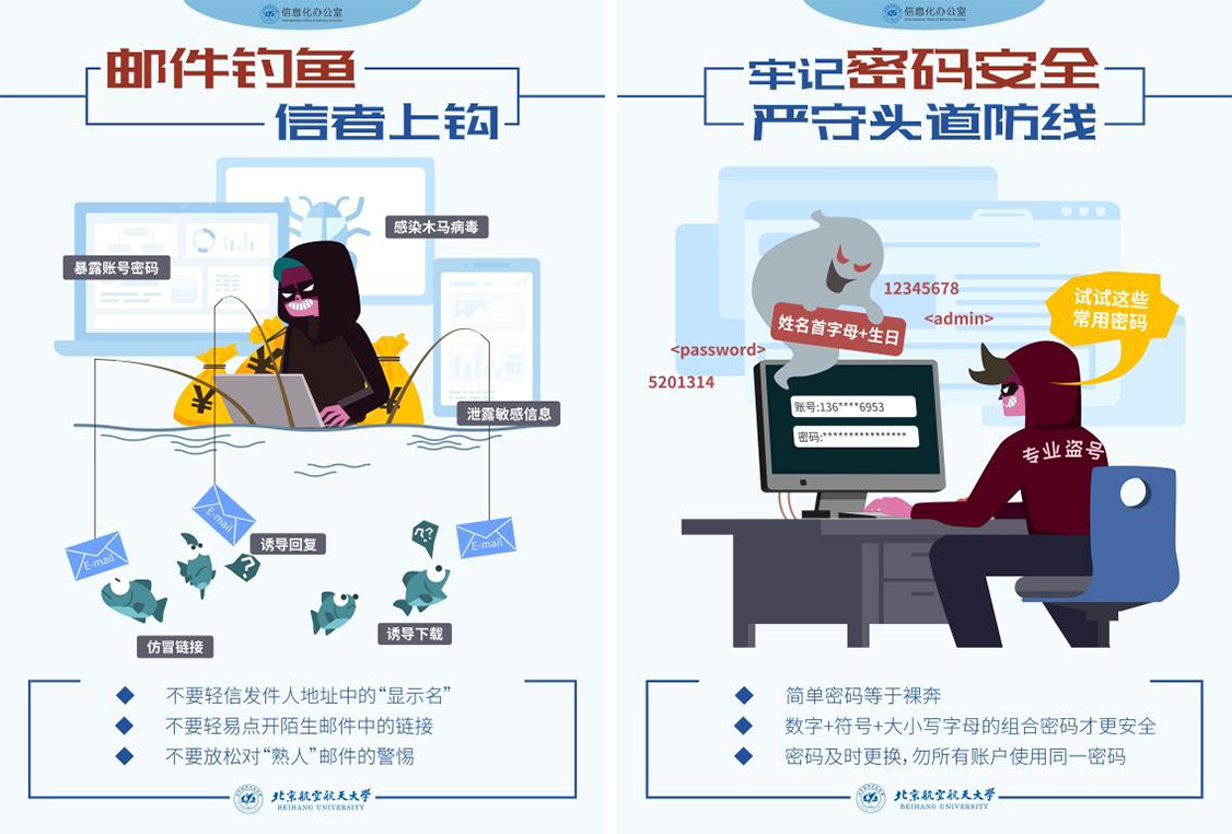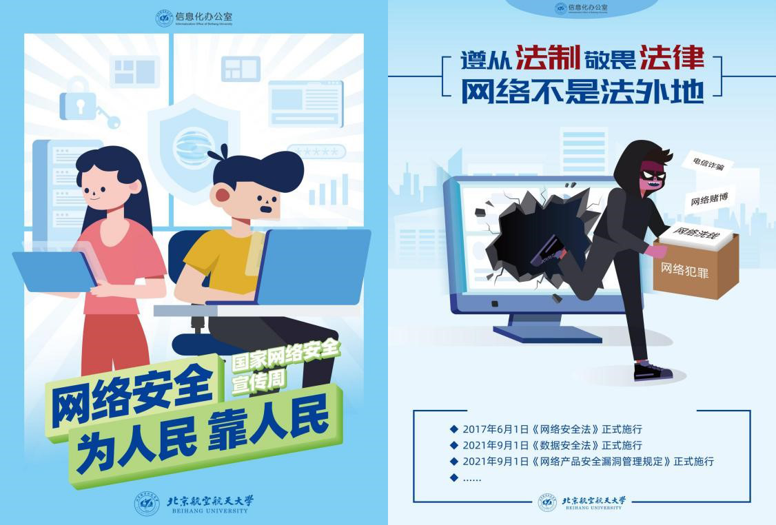 為進一步加強網絡安全工作,嚴格落實《中華人民共和國網絡安全法》的相關規定,切實做好我校網絡安全保障,進一步提升全校師生的網絡安全意識和安全防護技能,強化網絡陣地建設,創造安全、穩定、健康、和諧的校園學習和生活環境,不斷提高師生的安全意識,增強保護隱私信息以及辨別相關信息真假的能力,今年9月5日至9月11日,北航將舉行線上和線下結合的網絡安全周宣傳教育活動。