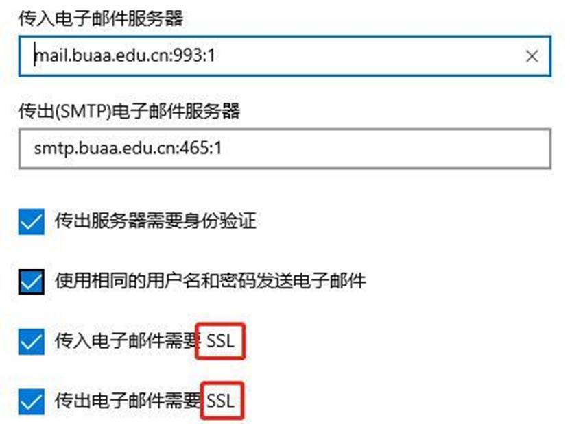 5.如使用郵箱客戶(hù)端(如Outlook和Foxmail等),需使用加密連接方式。可在“帳戶(hù)設(shè)置”中進(jìn)行如下勾選: