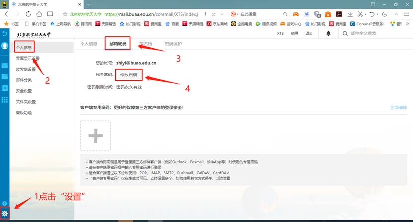 3.定期修改郵件系統(tǒng)和統(tǒng)一認(rèn)證系統(tǒng)的密碼為強(qiáng)密碼,強(qiáng)密碼應(yīng)為8位以上的無(wú)規(guī)律密碼,同時(shí)包含大小寫(xiě)字母+數(shù)字+字符,如:xyl37@bUaa@。