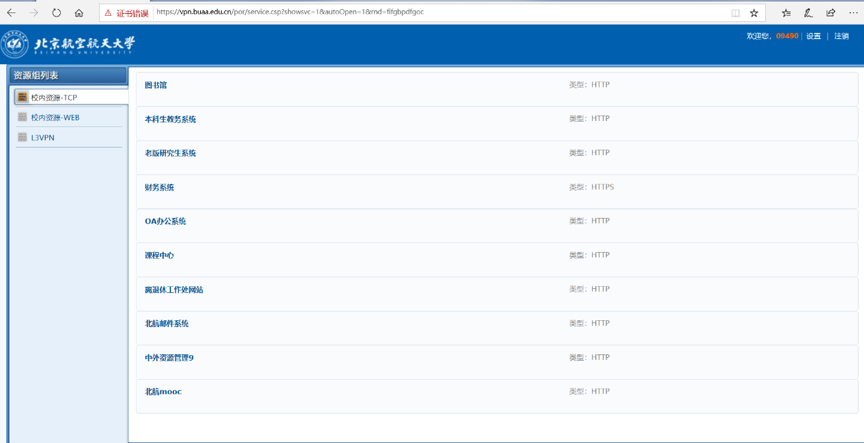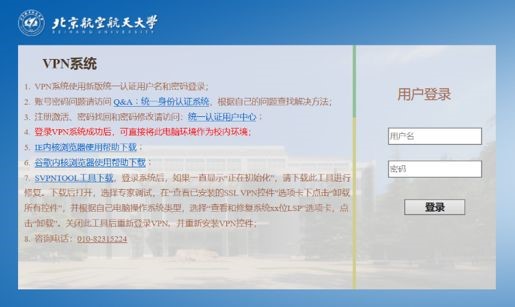 輸入學校統一身份認證的用戶名和密碼,點擊登錄。如果遇到瀏覽器兼容問題導致登錄不成功,也可以直接打開EasyConnect客戶端進行連接,服務器地址輸入vpn.buaa.edu.cn。