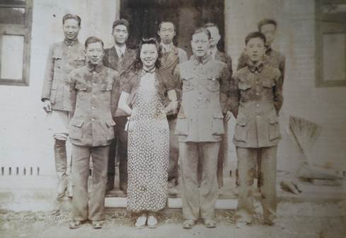 1940年,林士諤在成都空軍機械學校任高級教官及班主任時與同事及學員合影(前排左3為林士諤,左2為林夫人劉蓮娜)