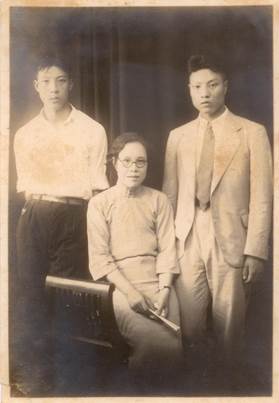 1931年,赴上海交通大學前與母親和弟弟合影(左為林士驤、右為林士諤、中為母親李兆春)