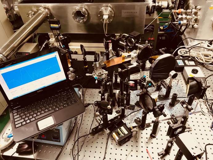 圖 通過啁啾脈沖展寬技術(shù)和光譜調(diào)制技術(shù)獲得0.2mJ, 4MV/cm的低頻高能強場太赫茲脈沖源及其實驗裝置照片