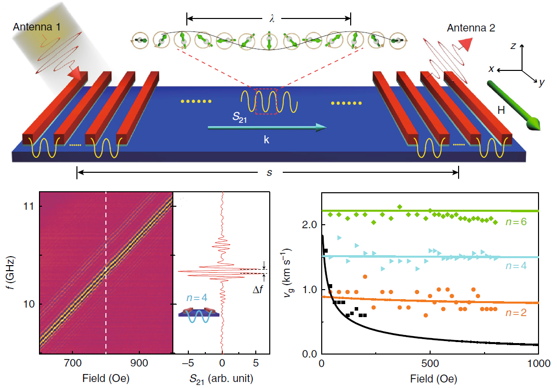 圖:傳播性超短波長(zhǎng)自旋波激發(fā)譜及群速度