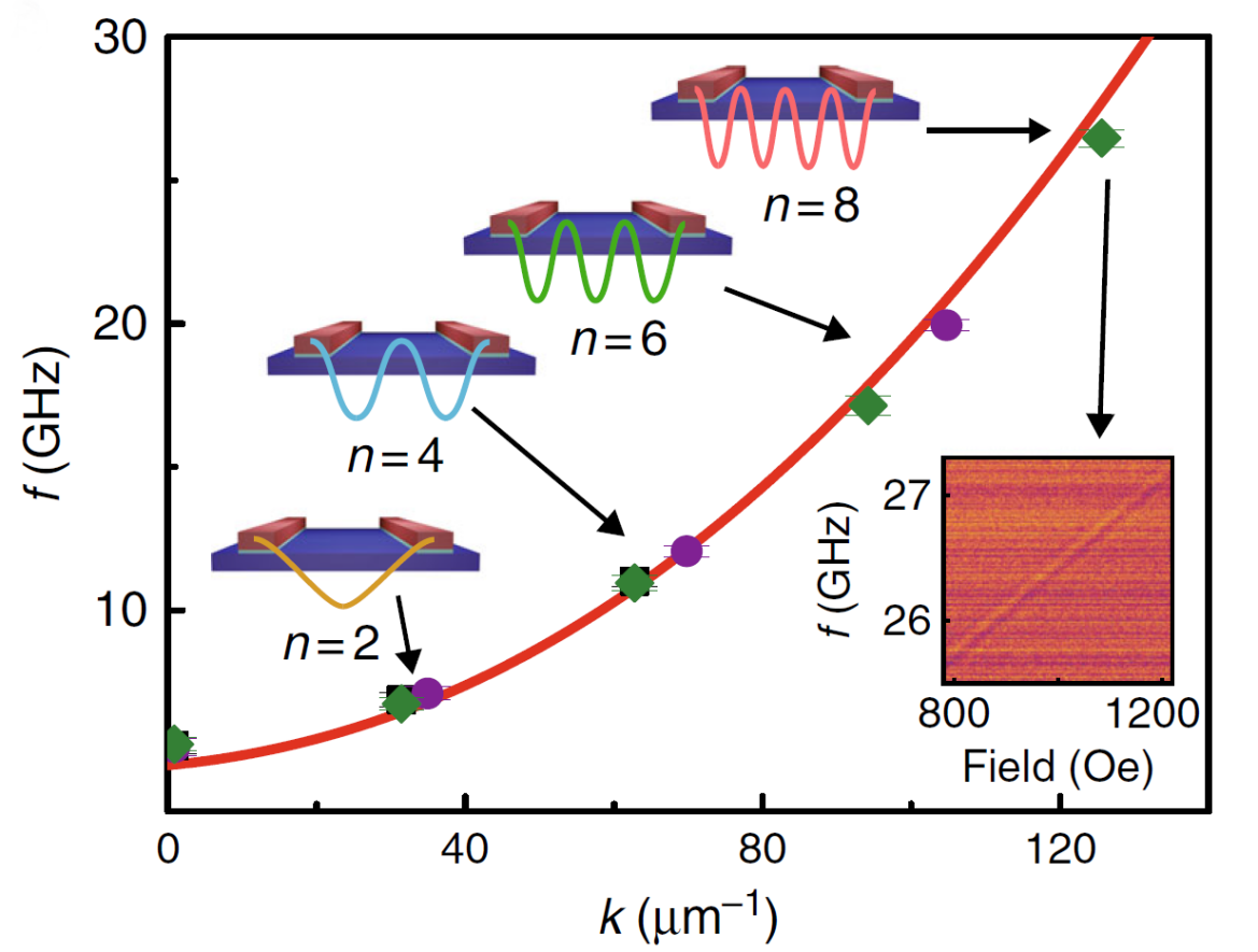圖:超短波長(zhǎng)自旋波色散曲線